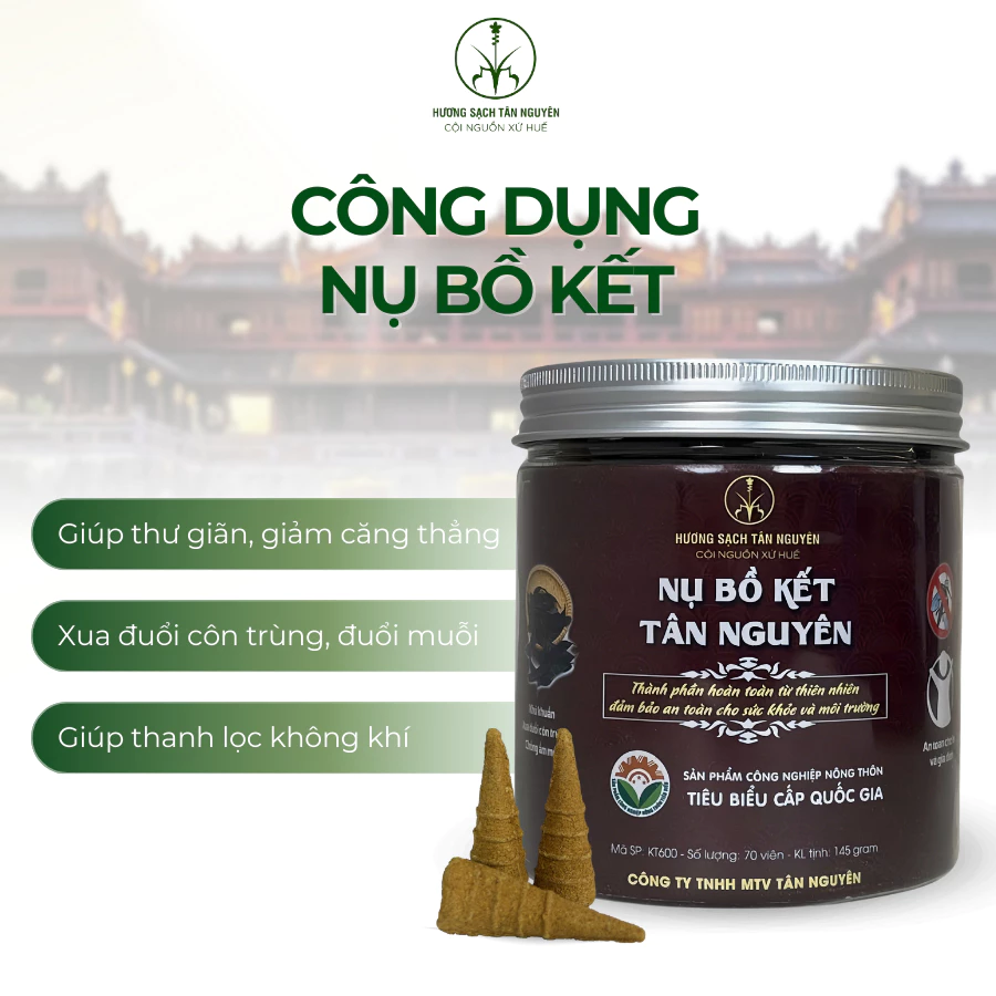 Được làm hoàn toàn từ nụ bồ kết tự nhiên và bột keo bời lời, sản phẩm cam kết không hương liệu, không hóa chất độc hại, đảm bảo an toàn tuyệt đối cho gia đình bạn. Xông bồ kết tẩy uế thường xuyên không chỉ giúp xua đi âm khí, thu hút năng lượng tích cực mà còn là biện pháp đuổi muỗi và côn trùng an toàn nhất. Khám phá ngay sản phẩm OCOP 4 sao đã được kiểm định chất lượng quốc tế của thương hiệu Tân Nguyên!