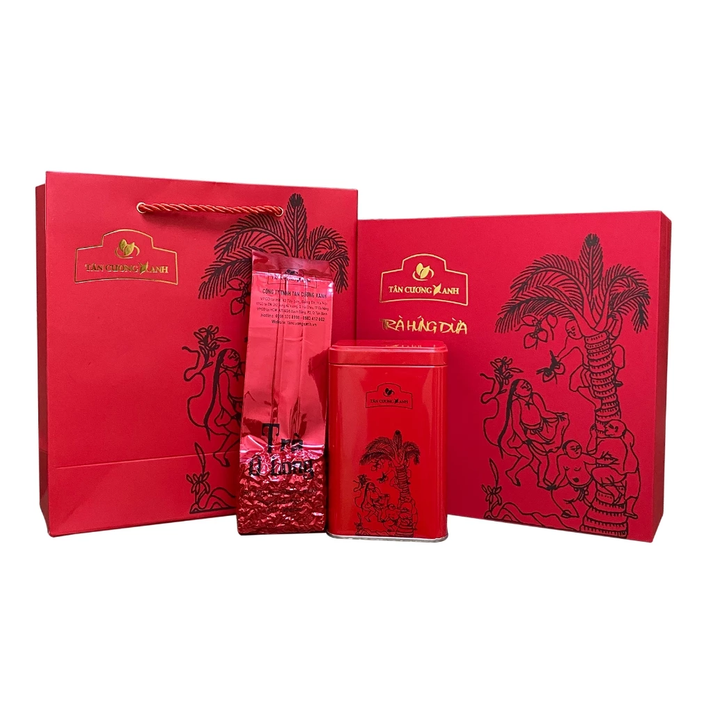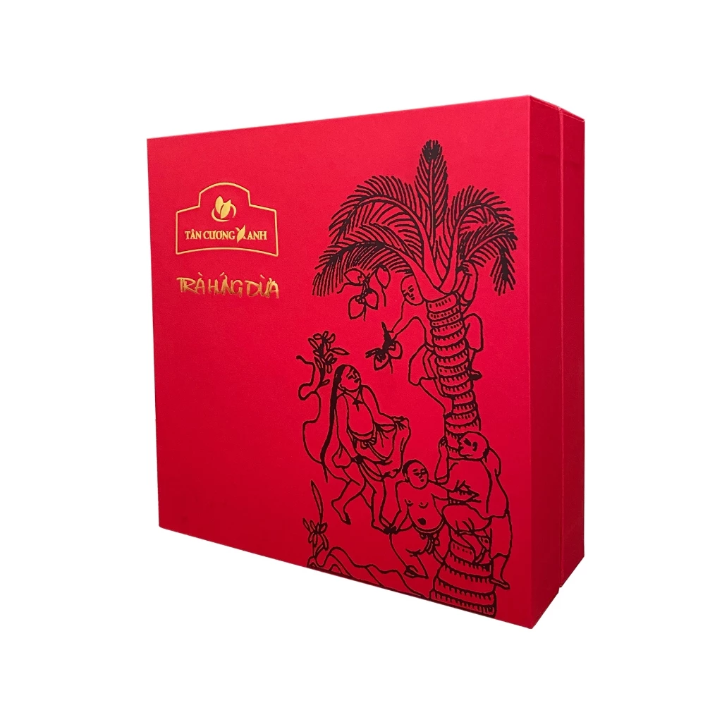 Bộ Trà Ô Long Hứng Dừa là dòng sản phẩm quà biếu cao cấp nhất trong bộ sưu tập của Tân Cương Xanh, được thiết kế dành riêng cho nhu cầu biếu tặng đối tác chiến lược và khách hàng VIP. Sản phẩm không chỉ mang giá trị vật chất với phẩm trà Oolong Bảo Lộc thượng hạng mà còn chứa đựng giá trị văn hóa sâu sắc qua hình ảnh bức tranh dân gian “Hứng Dừa”.