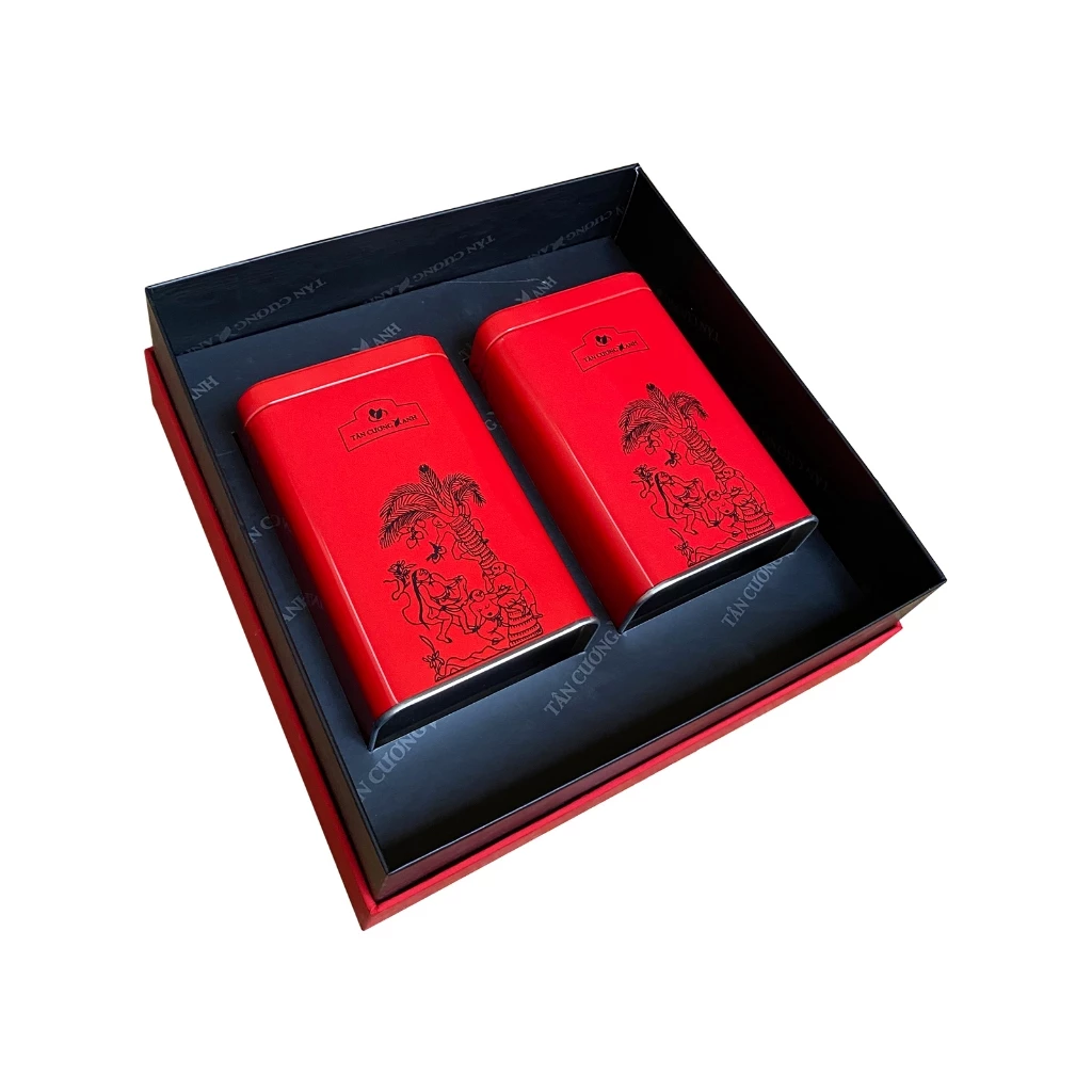 - ✓ Quy cách tinh tế: Bên trong hộp lớn là 2 hộp nhỏ (mỗi hộp 100g). Cách chia này giúp bảo quản trà tốt hơn và tạo sự đầy đặn cho món quà.
