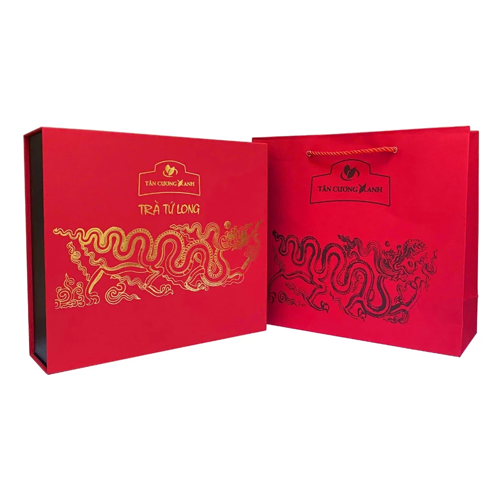 Chào đón năm mới Bính Ngọ 2026, Tân Cương Xanh trân trọng giới thiệu tuyệt phẩm Bộ Trà Ô Long Tứ Long 400gram. Đây là phiên bản nâng cấp đặc biệt trong bộ sưu tập quà tặng, được thiết kế dành riêng cho các doanh nghiệp và cá nhân đang tìm kiếm những set quà tết cao cấp, vừa sang trọng về hình thức, vừa tinh tế về chất lượng.