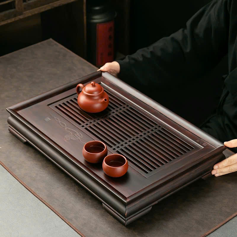 - Kích thước dài giúp khay trà bằng tre thay thế khay trà truyền thống
