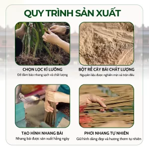 - ✓ Ít Khói và An Toàn: Nhang sạch, ít khói, không cay mắt, dùng được trong phòng máy lạnh và an toàn cho sức khỏe.