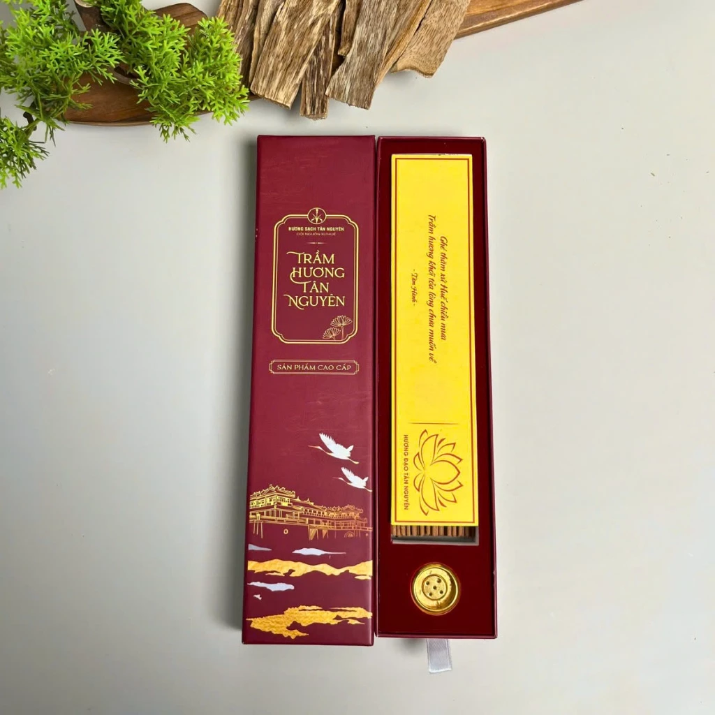 Nhang Trầm Hương Không Tăm Tân Nguyên cao cấp (100 que) là hương sạch 100% trầm tự nhiên, dùng để thiền định, yoga. Hương thơm thanh khiết, tĩnh tâm, không cay mắt.
