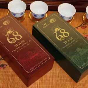 - Biểu tượng Âm Dương Lộc Phát: Thiết kế hộp trà nổi bật với con số “68”, tượng trưng cho sự hòa hợp âm dương và tài lộc viên mãn, rất phù hợp làm quà tặng phong thủy.