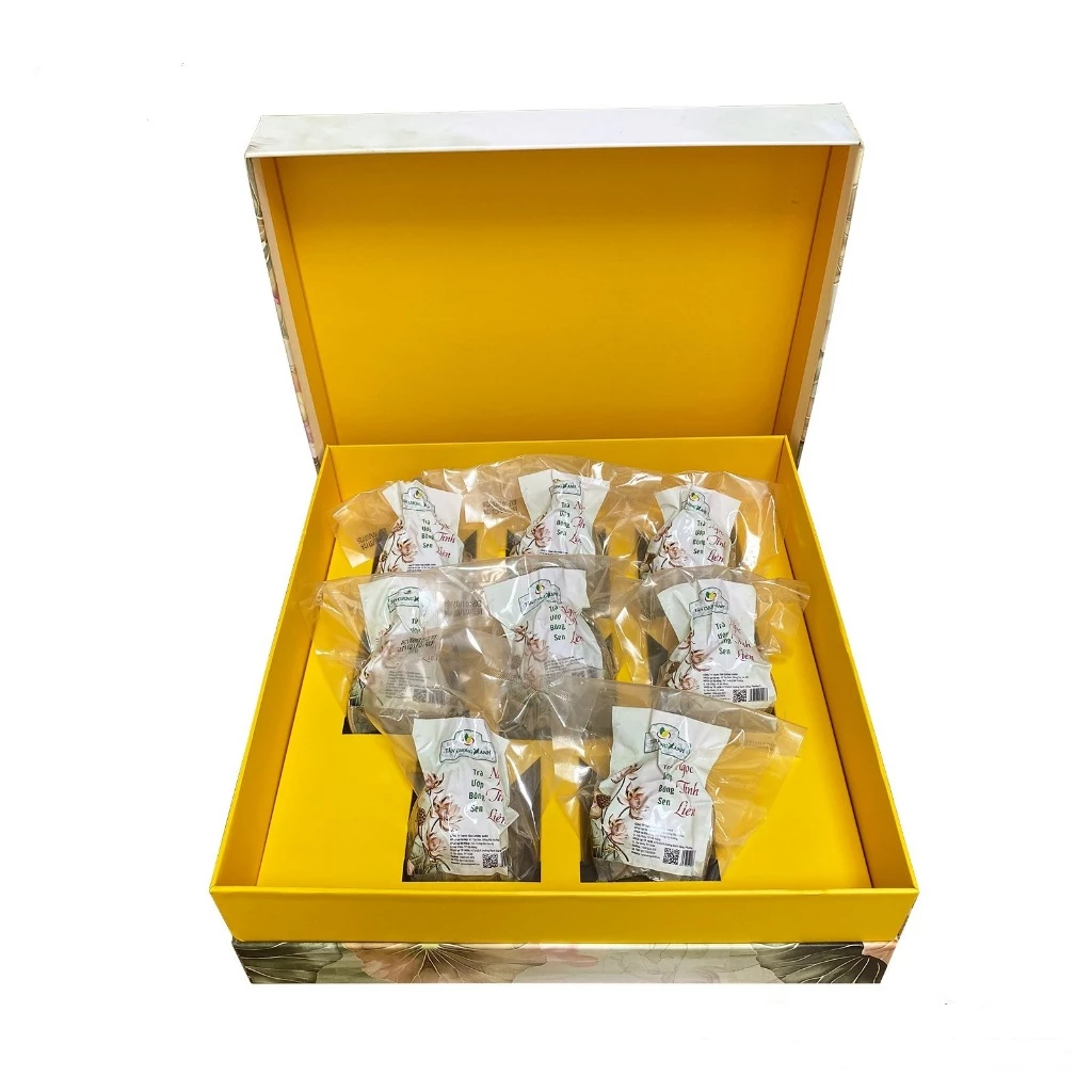 Trà Ướp Bông Sen Ngọc Tỉnh Liên (Hộp 8 bông) là sự kết hợp hoàn hảo giữa trà Tân Cương và sen Tây Hồ nguyên bông sấy thăng hoa. Hộp carton lạnh 7 màu sang trọng, tặng kèm túi giấy. Món quà “Phát Tài Phát Lộc” đẳng cấp.