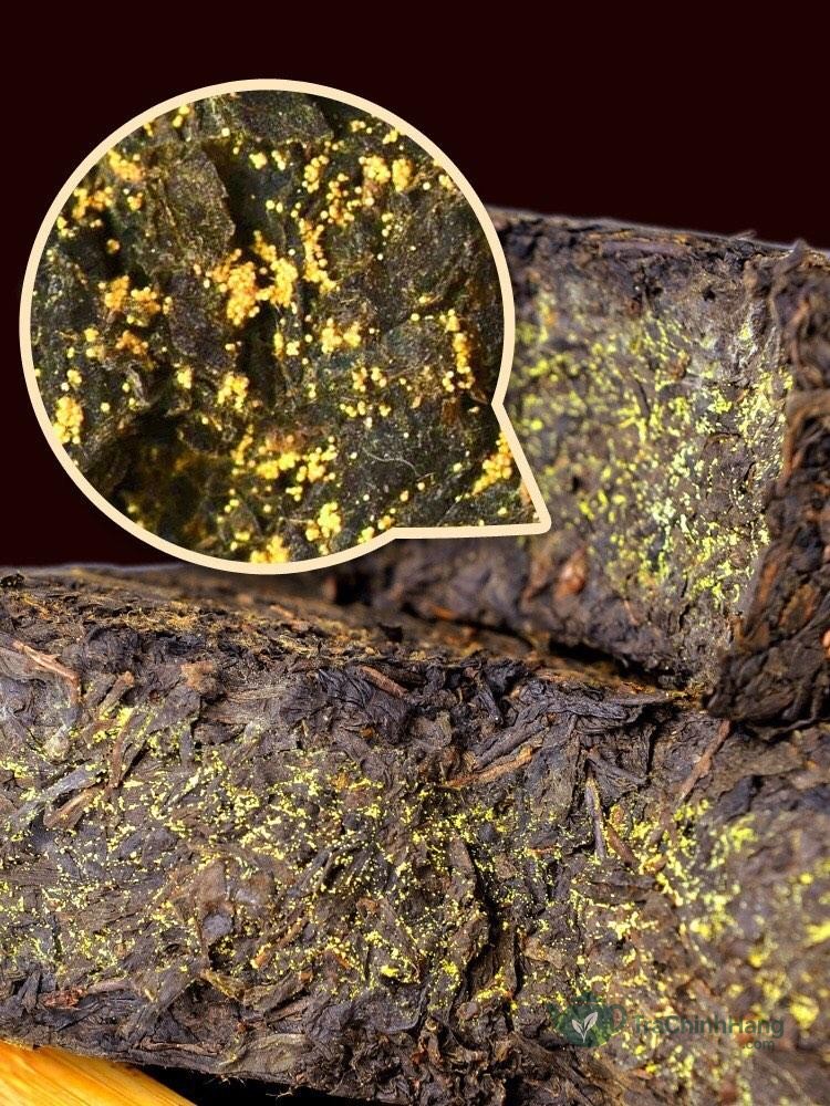 Trước khi xử lý, bạn cần bình tĩnh quan sát. Trong giới Phổ Nhĩ, có một loại nấm quý gọi là Kim Hoa (Golden Flowers) – Eurotium cristatum. Đây là lợi khuẩn cực tốt. Đừng nhầm lẫn mà vứt đi “vàng ròng”.